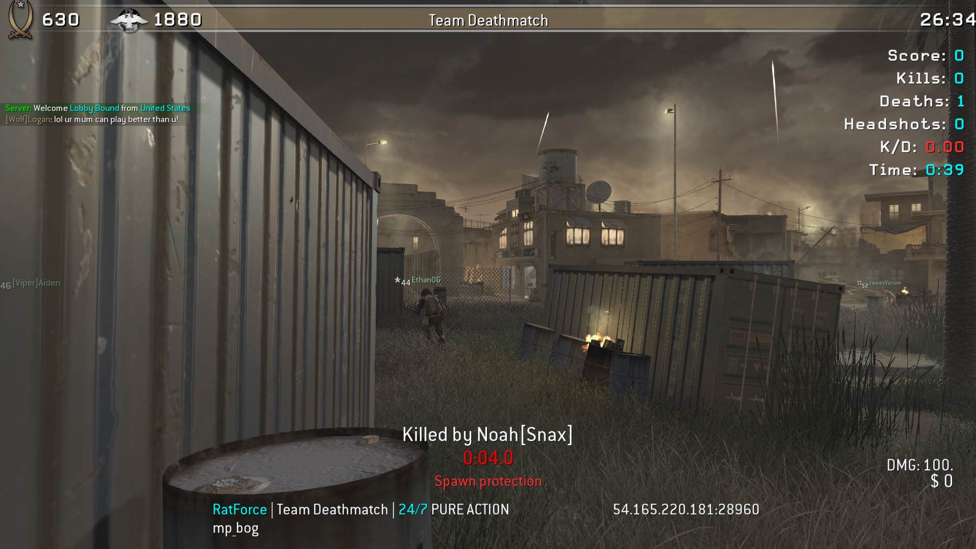 | SgtoHARDDUCK | RatForce | Team Deathmatch | 24/7 PURE ACTION | 2025-12-29 14:43:40 | 0803 | Report | |