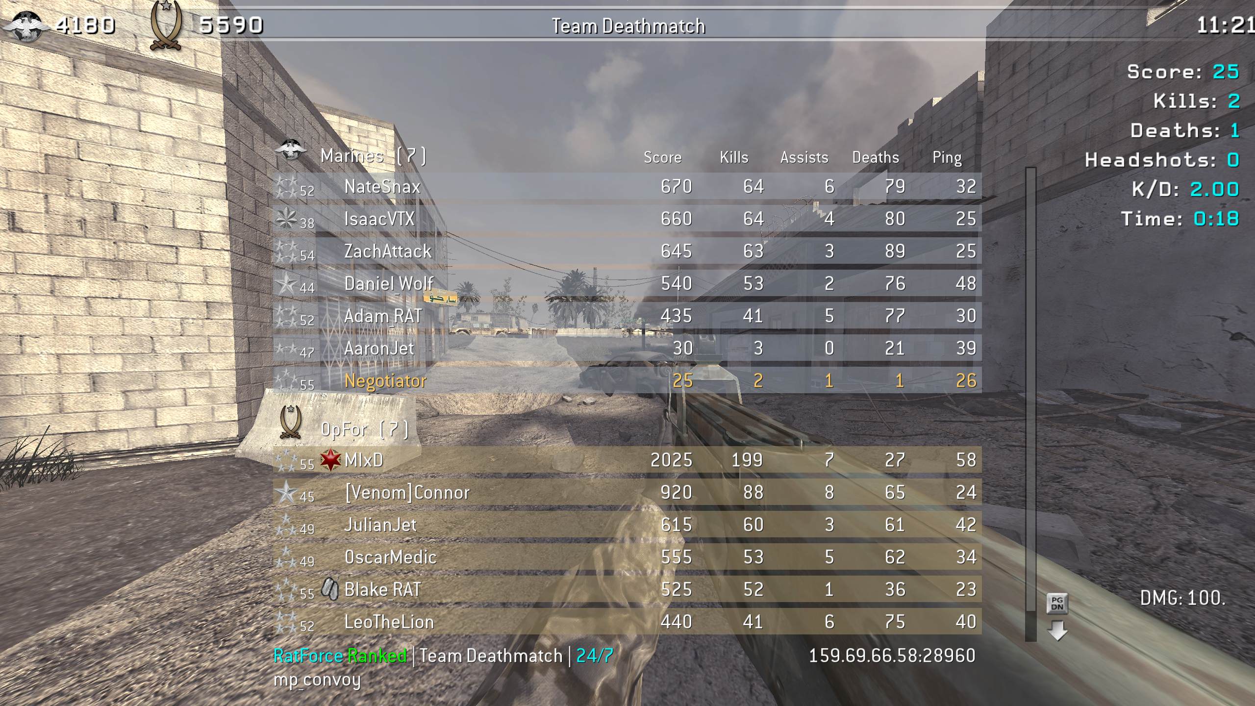 | Negotiator | RatForce Ranked | Team Deathmatch | 24/7 | 2025-12-25 09:33:19 | 3993 | Report | |