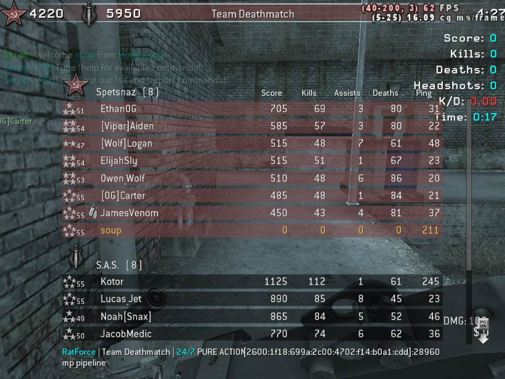 | soup | RatForce | Team Deathmatch | 24/7 PURE ACTION | 2025-12-25 10:43:02 | 1245 | Report | |