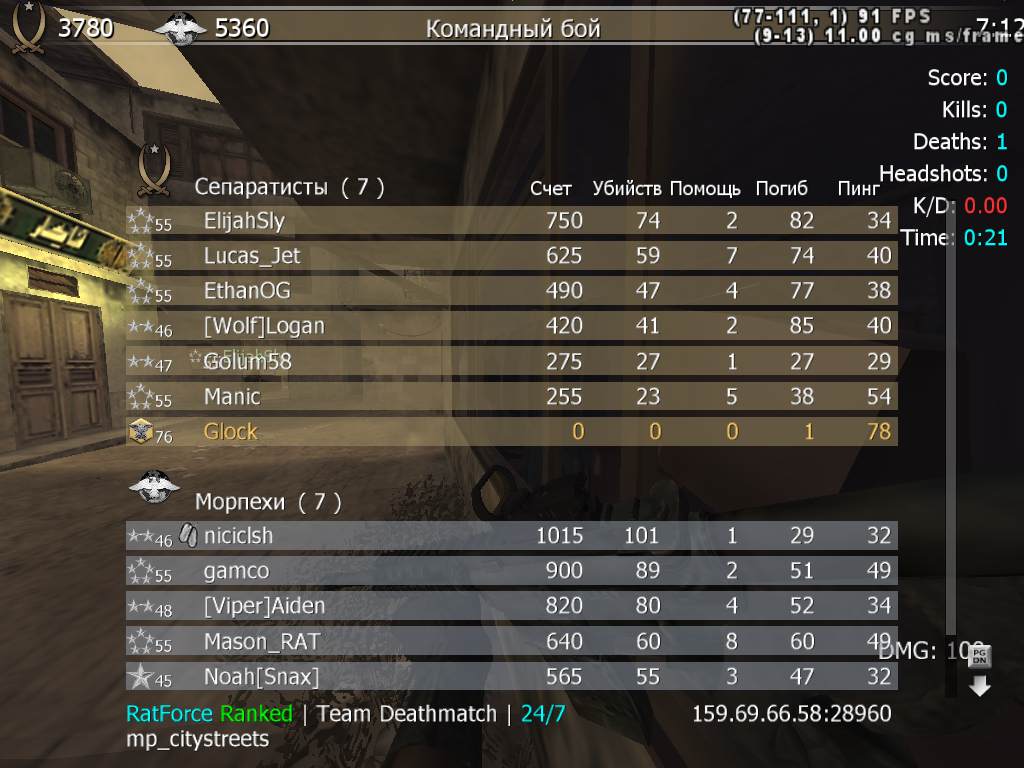 | Glock | RatForce Ranked | Team Deathmatch | 24/7 | 2025-12-11 17:34:23 | 6185 | Report | |