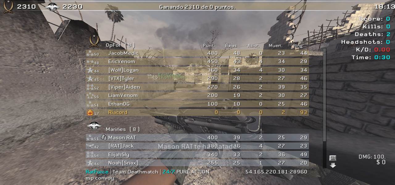 | Cod_4 | RatForce Ranked | Team Deathmatch | 24/7 | 2025-12-11 00:12:13 | 7117 | Report | |