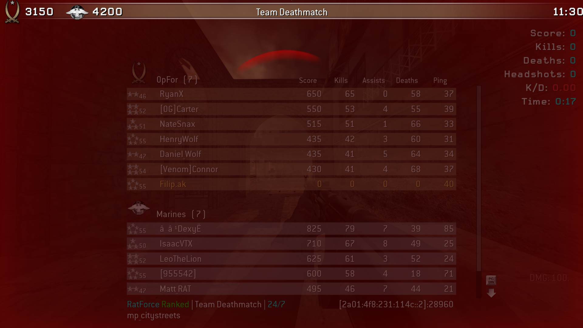 | Filip.ak | RatForce Ranked | Team Deathmatch | 24/7 | 2025-12-07 12:32:44 | 9808 | Report | |