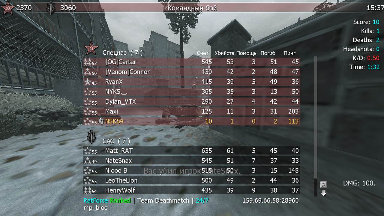 | 76561198260148521 | RatForce Ranked | Team Deathmatch | 24/7 | 2025-12-06 09:17:12 | 0311 | Report | |
