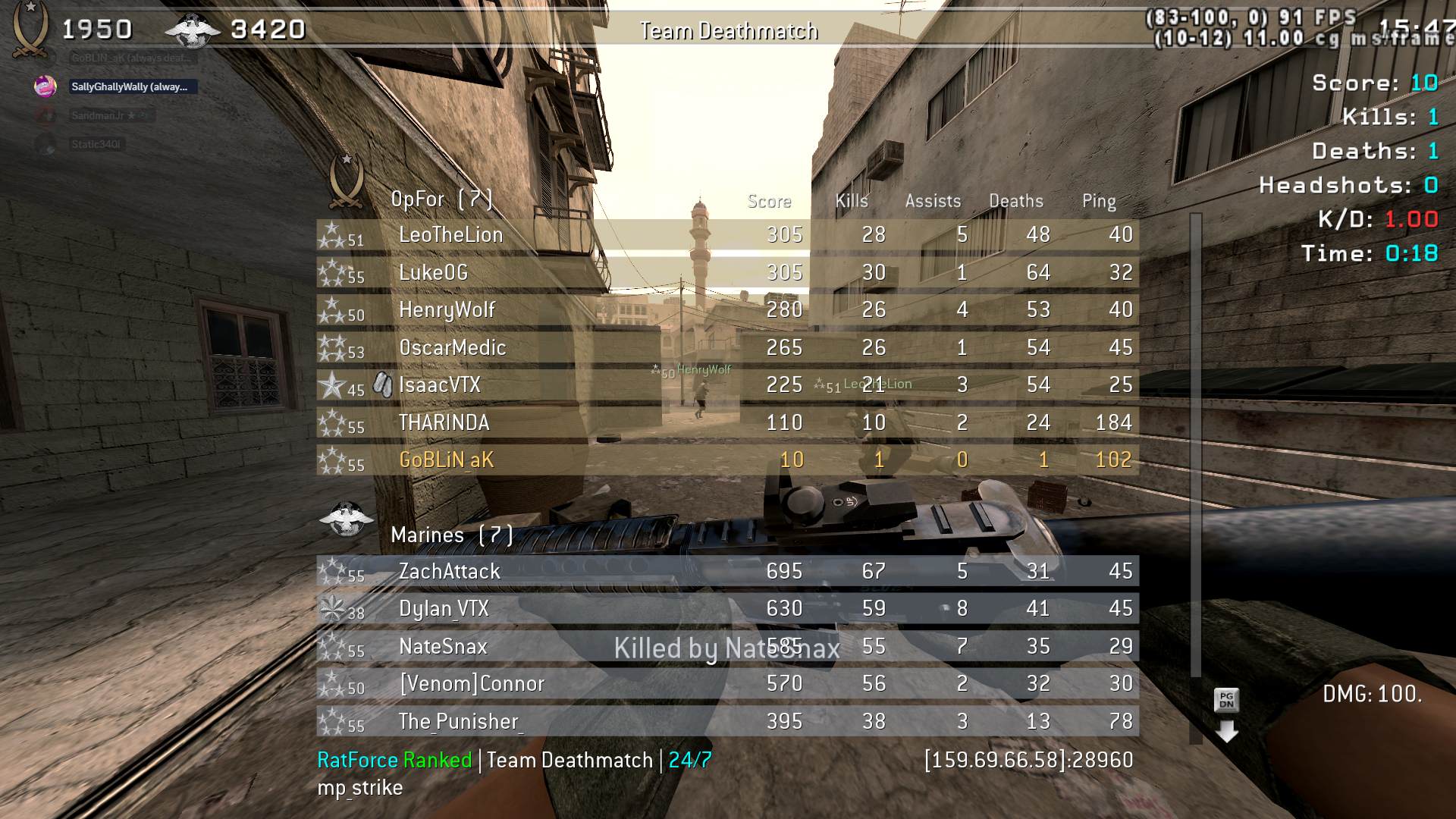 | SuperSaltyTony | RatForce Ranked | Team Deathmatch | 24/7 | 2025-12-04 03:54:52 | 9258 | Report | |