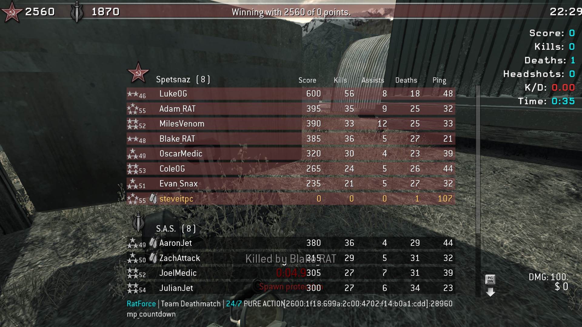 | ranaarsalan262 | RatForce | Team Deathmatch | 24/7 PURE ACTION | 2025-12-03 01:00:18 | 7441 | Report | |