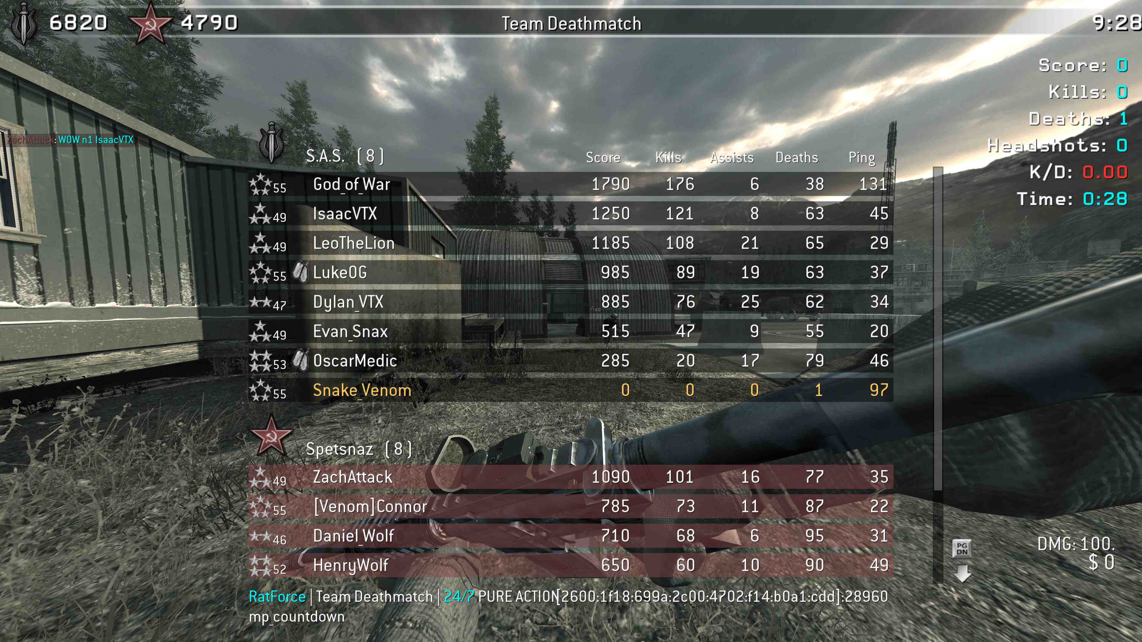 | shadowhunter | RatForce | Team Deathmatch | 24/7 PURE ACTION | 2025-11-30 03:05:34 | 4756 | Report | |