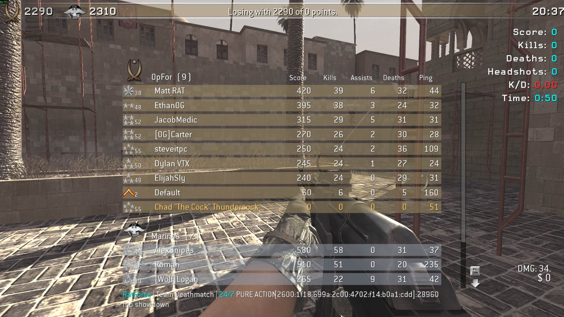 | Chad "The Cock" Thundercock | RatForce | Team Deathmatch | 24/7 PURE ACTION | 2025-11-27 16:47:25 | 0301 | Report | |
