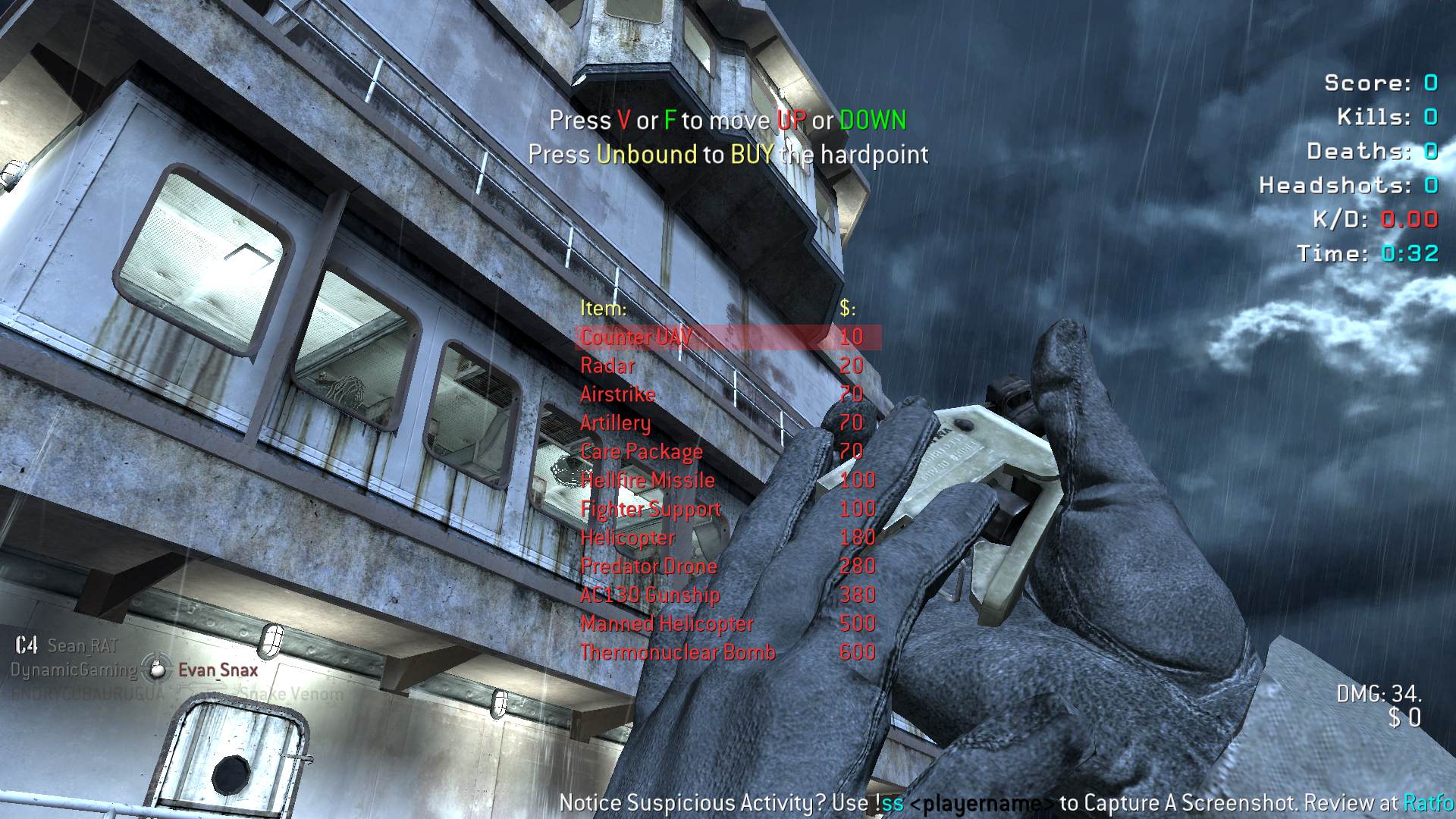 | Player | Server | Date | PlayerID | Screenshot | Report |
