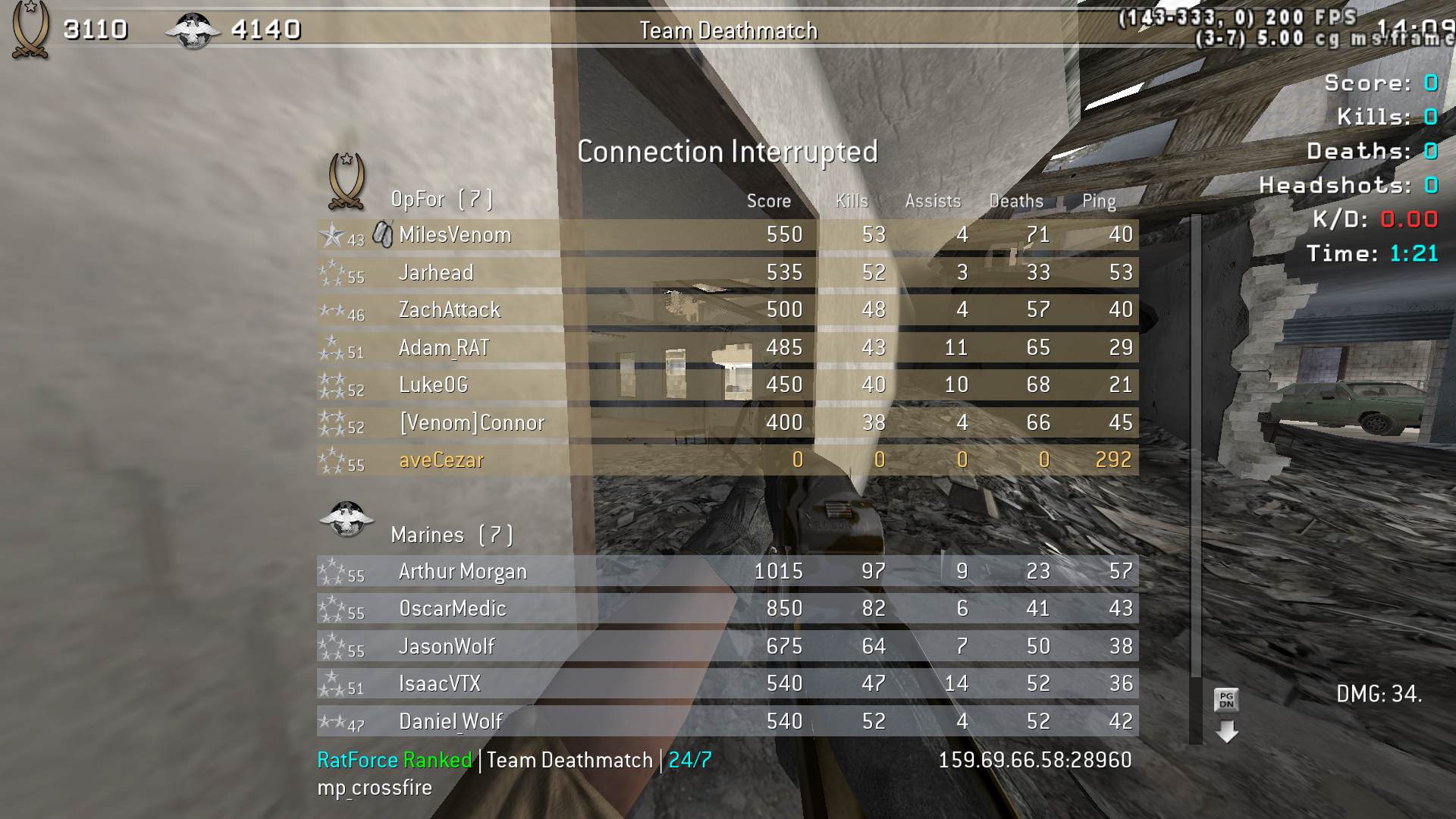 | amohammadv13 | RatForce Ranked | Team Deathmatch | 24/7 | 2025-11-17 18:55:43 | 2804 | Report | |