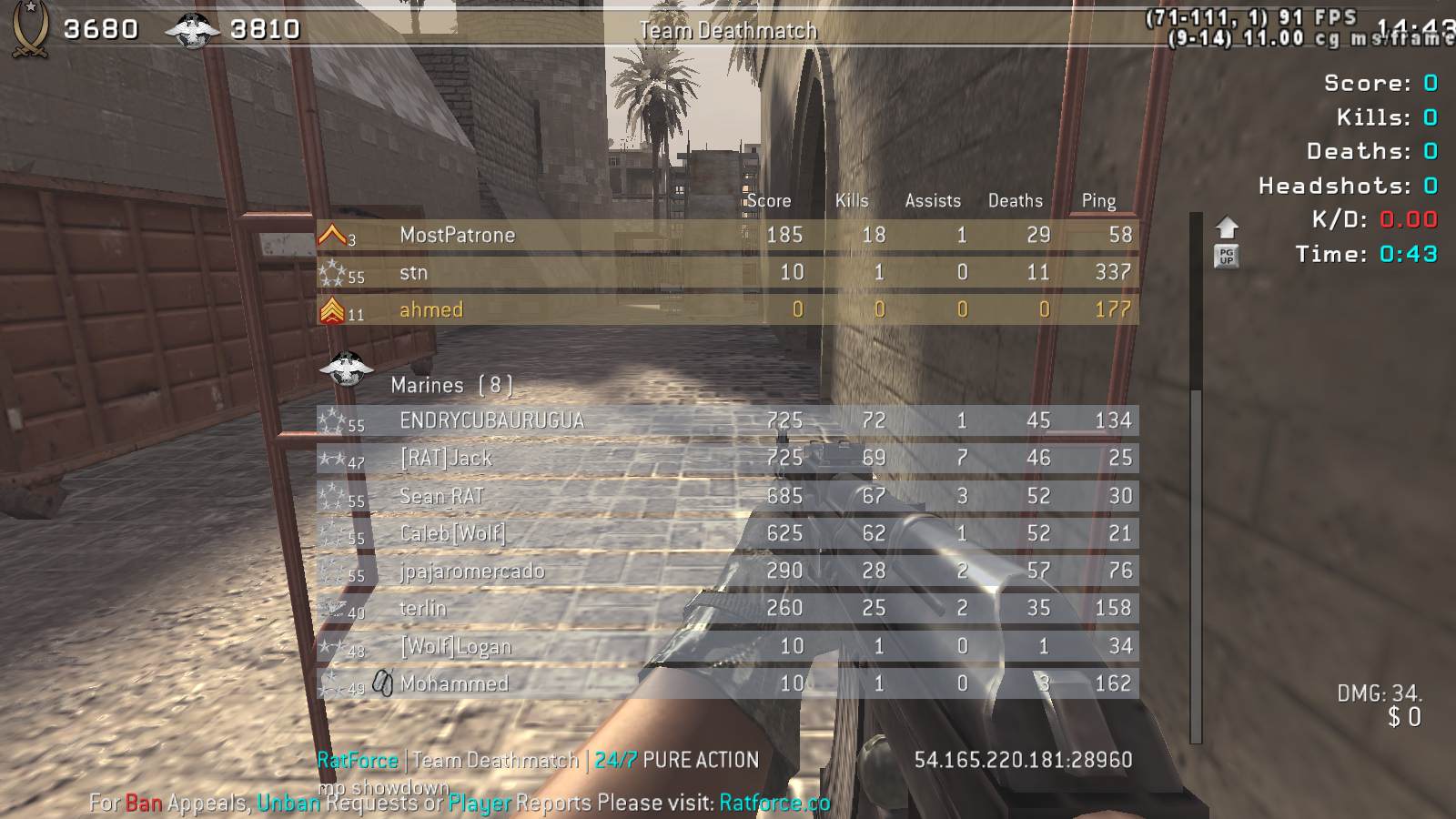 | Mohammed | RatForce | Team Deathmatch | 24/7 PURE ACTION | 2025-11-13 03:27:20 | 2419 | Report | |