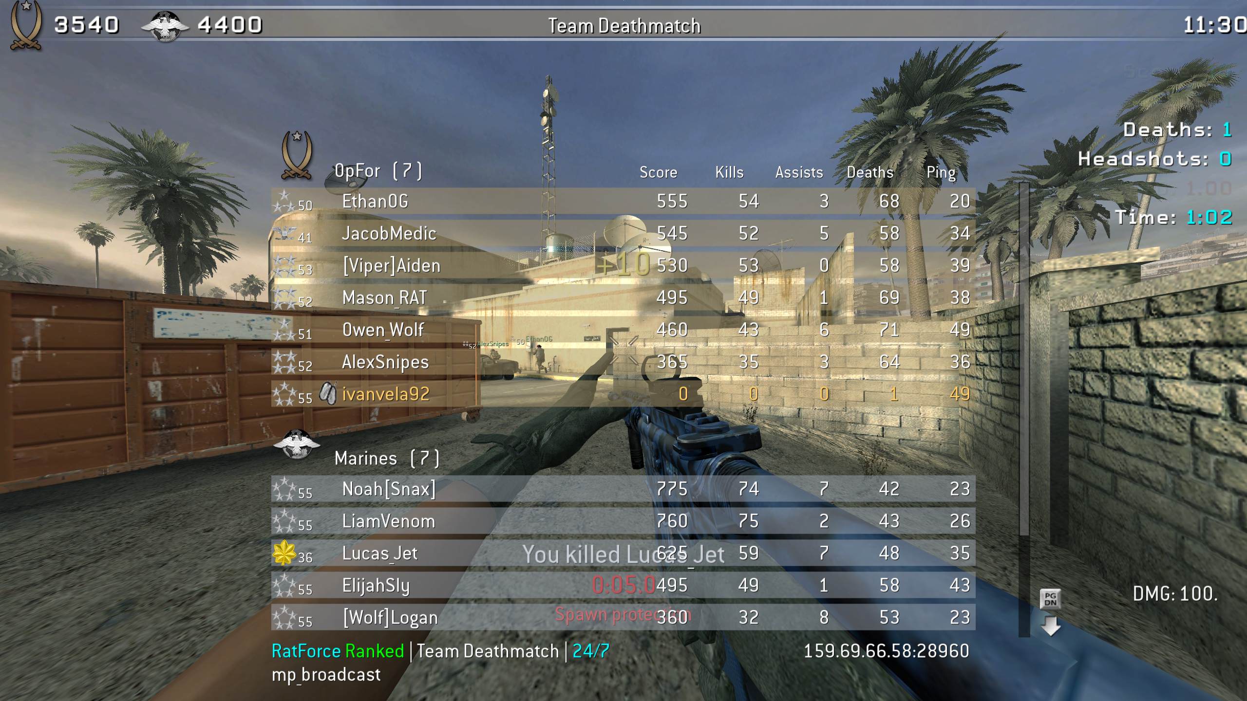 | ivanvela92 | RatForce Ranked | Team Deathmatch | 24/7 | 2025-11-10 19:50:24 | 5111 | Report | |