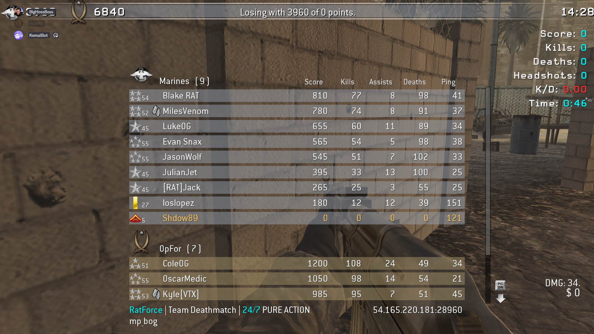 | Dommyking7224 | RatForce | Team Deathmatch | 24/7 PURE ACTION | 2025-11-02 00:28:15 | 4798 | Report | |