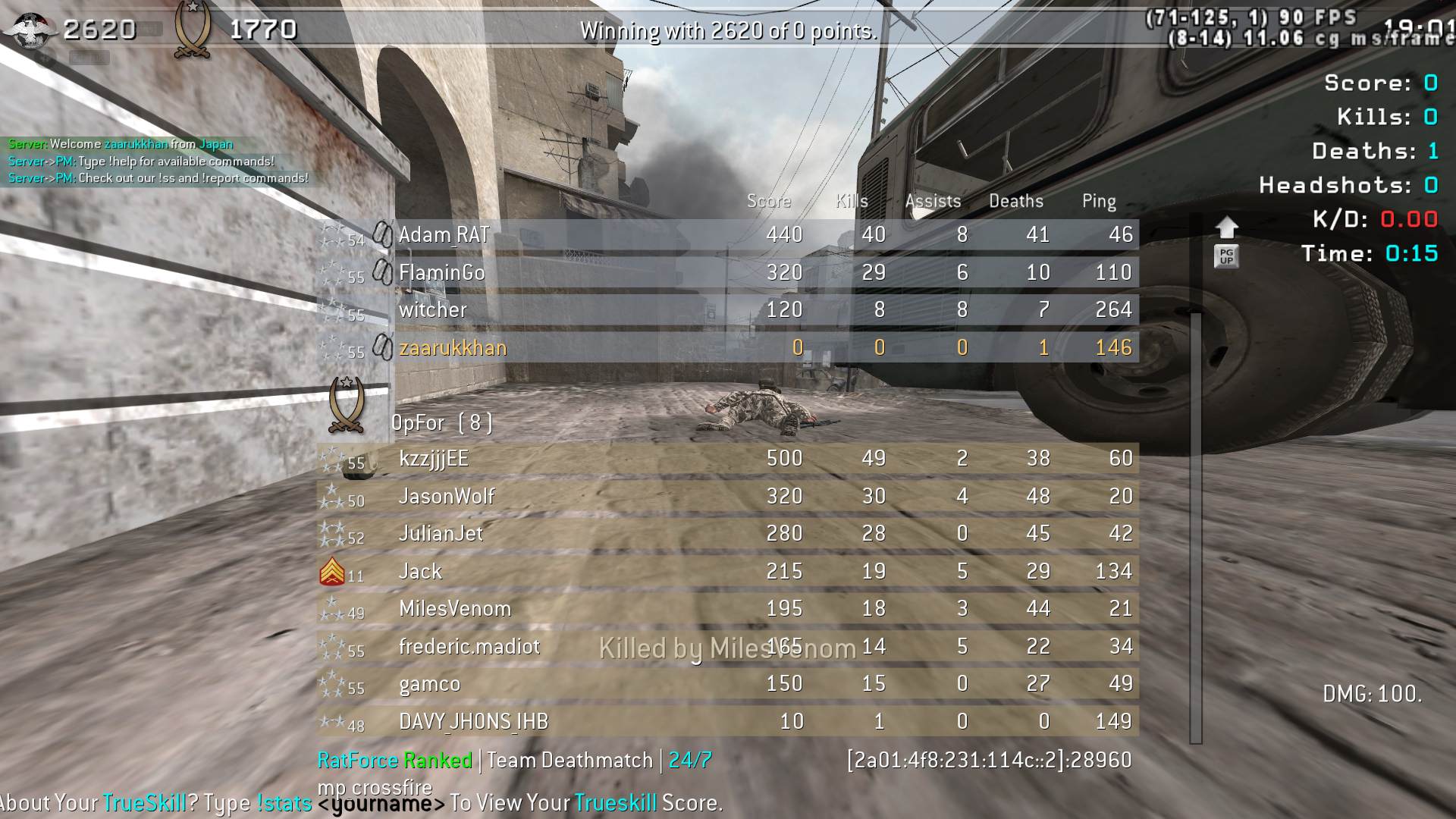 | zaarukkhan | RatForce Ranked | Team Deathmatch | 24/7 | 2025-11-01 15:51:27 | 2813 | Report | |