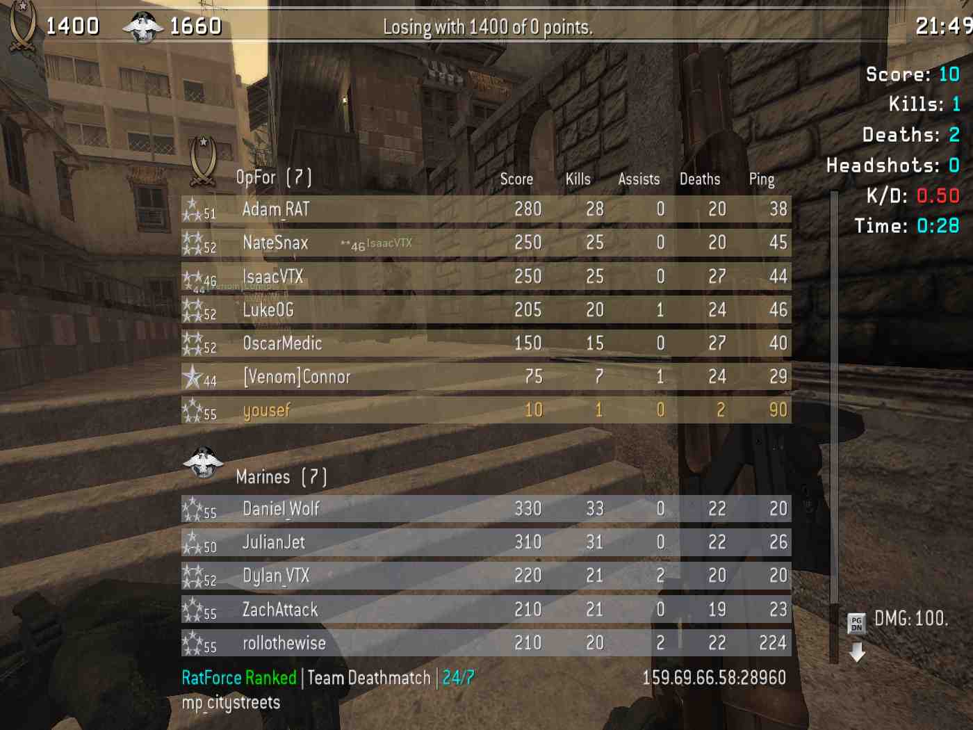 | yousef | RatForce Ranked | Team Deathmatch | 24/7 | 2025-11-01 03:02:50 | 5963 | Report | |