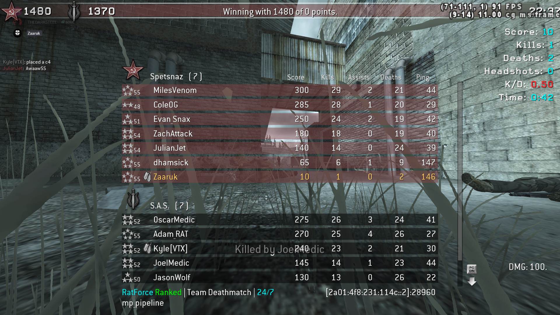 | omed | RatForce Ranked | Team Deathmatch | 24/7 | 2025-10-27 12:05:34 | 2657 | Report | |