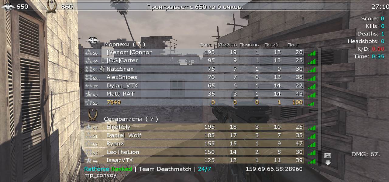 | chypacabras_rus | RatForce Ranked | Team Deathmatch | 24/7 | 2025-10-20 12:31:25 | 9250 | Report | |