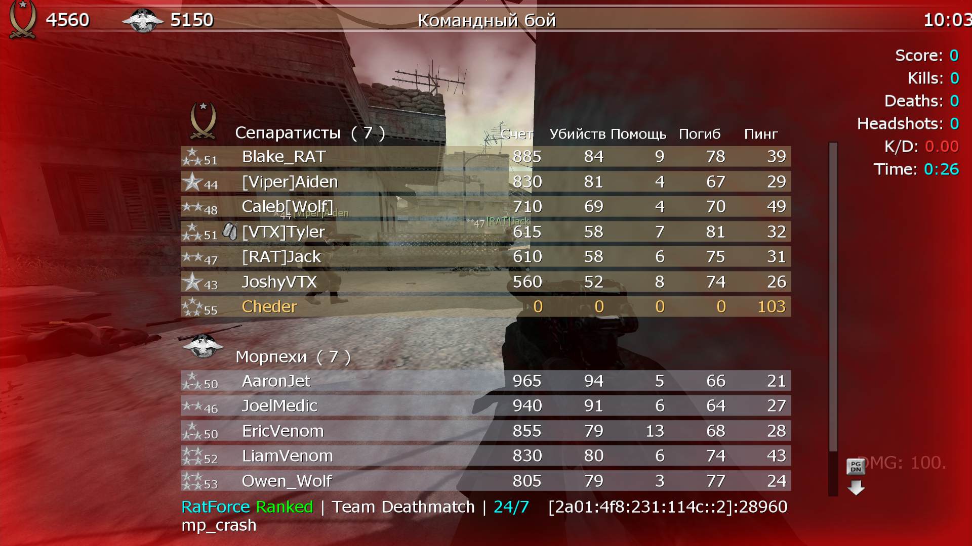 | Me on a Video Game | RatForce Ranked | Team Deathmatch | 24/7 | 2025-10-19 03:42:20 | 2642 | Report | |