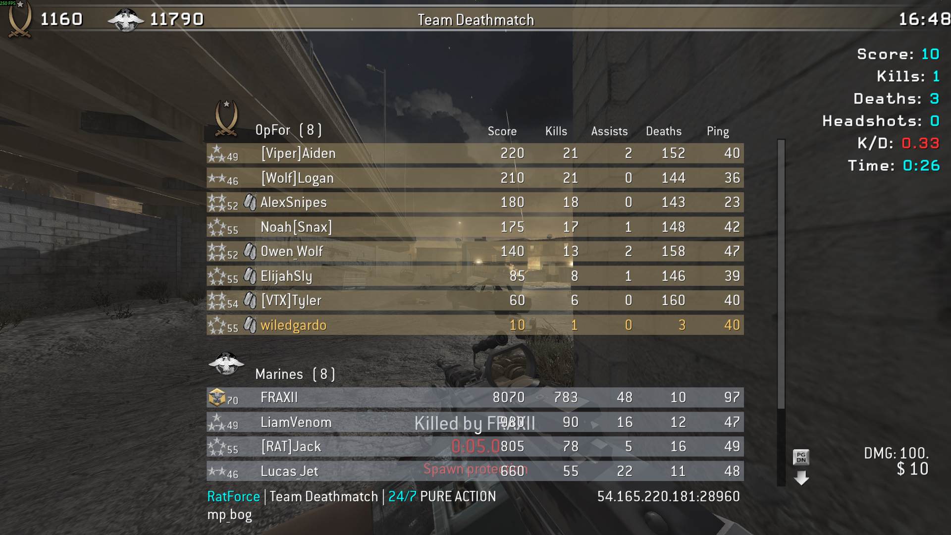 | wiledgardo | RatForce | Team Deathmatch | 24/7 PURE ACTION | 2025-10-14 22:31:40 | 1661 | Report | |