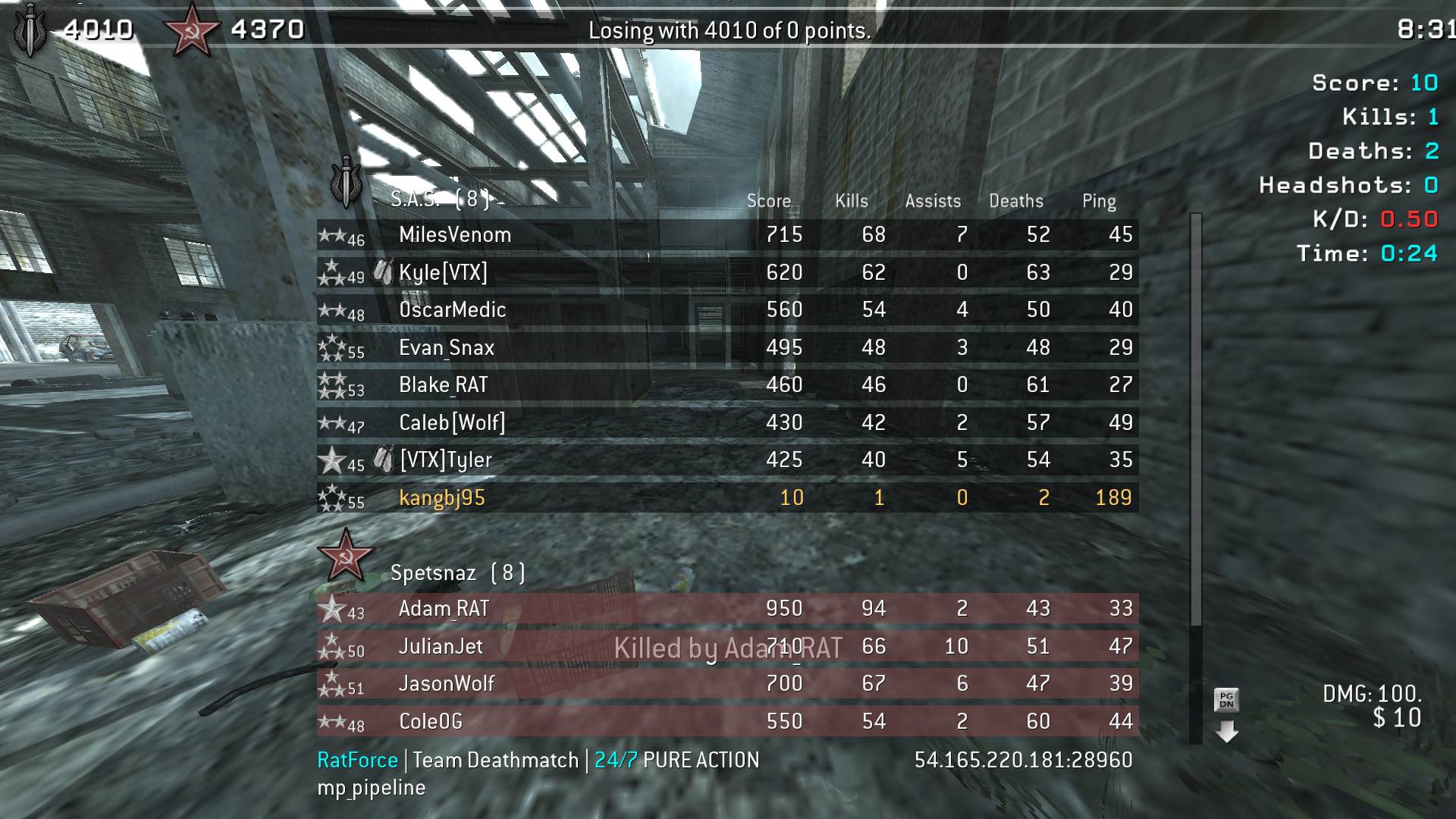 | kangbj95 | RatForce | Team Deathmatch | 24/7 PURE ACTION | 2025-10-10 12:03:43 | 0505 | Report | |
