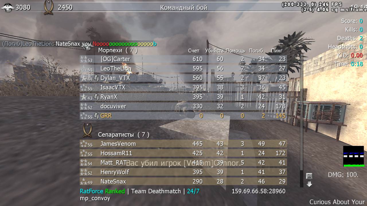 | killazavr | RatForce Ranked | Team Deathmatch | 24/7 | 2025-10-10 04:19:56 | 9250 | Report | |