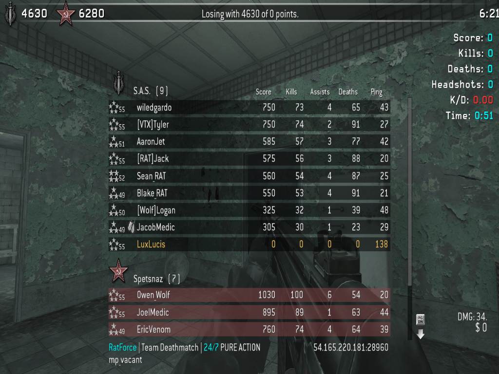 | pesada15 | RatForce | Team Deathmatch | 24/7 PURE ACTION | 2025-09-21 15:17:13 | 9598 | Report | |