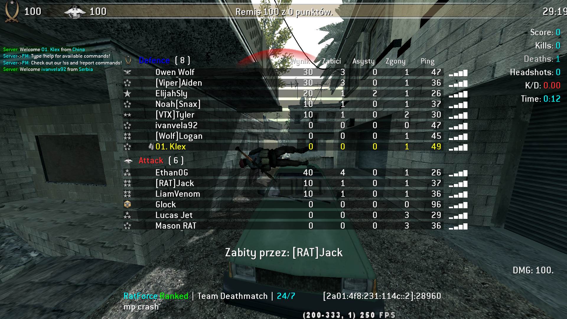 | Arek | RatForce | Team Deathmatch | 24/7 PURE ACTION | 2025-09-20 19:43:18 | 1529 | Report | |