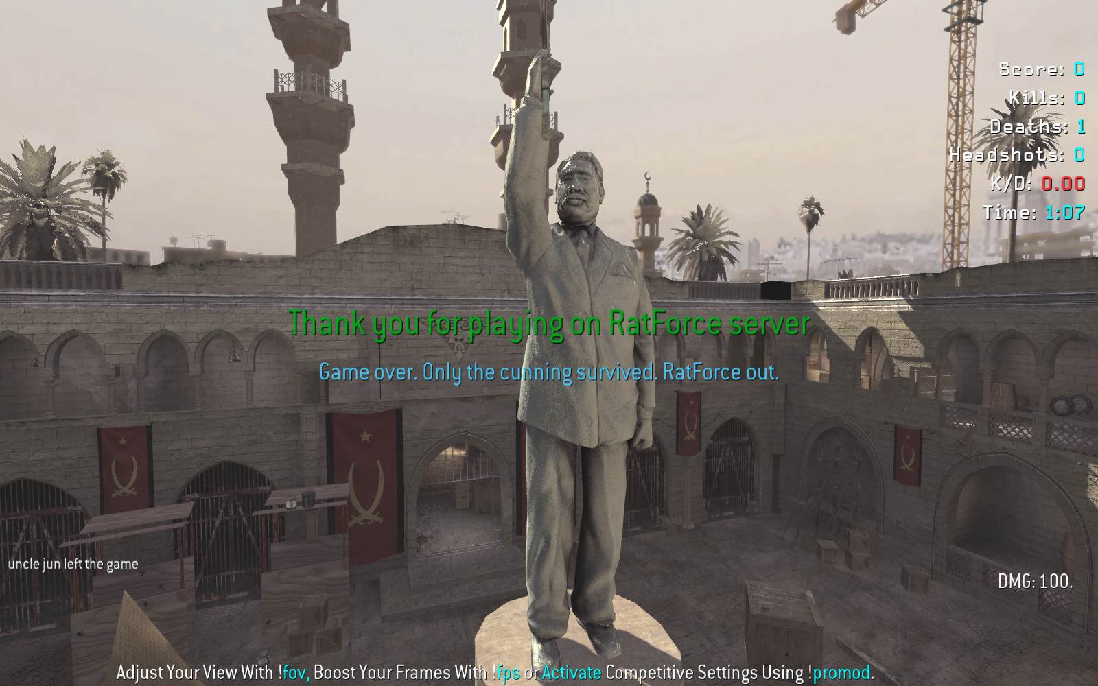 | uncle jun | RatForce | Team Deathmatch | 24/7 PURE ACTION | 2025-09-14 22:24:46 | 4987 | Report | |