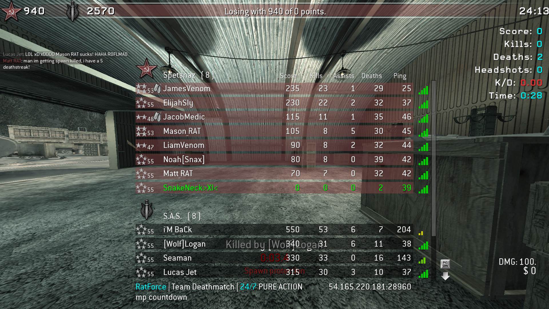 | SnakeNeck>XI< | RatForce | Team Deathmatch | 24/7 PURE ACTION | 2025-09-13 13:00:20 | 8709 | Report | |