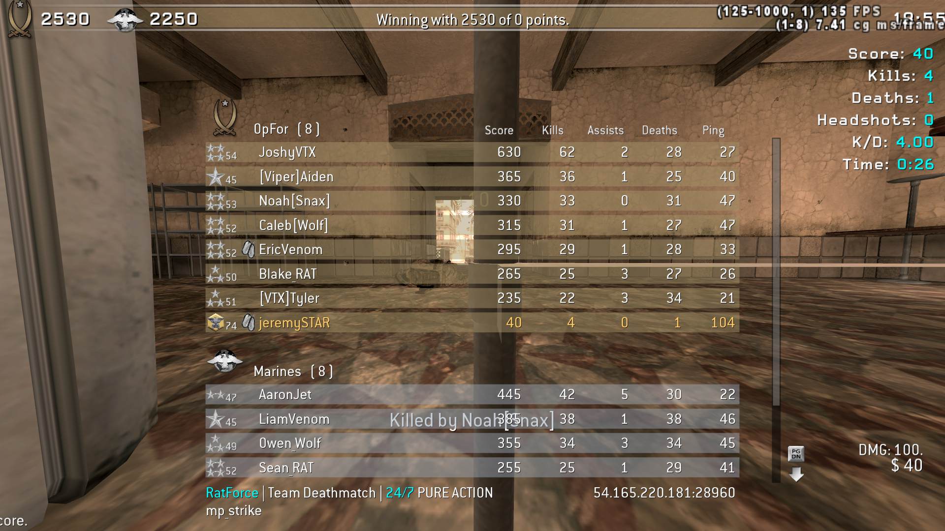 | KIA | RatForce Ranked | Team Deathmatch | 24/7 | 2025-09-09 19:32:28 | 7992 | Report | |
