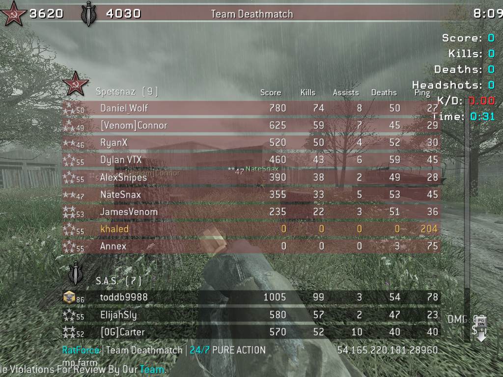 | toddb9988 | RatForce Ranked | Team Deathmatch | 24/7 | 2025-09-08 17:48:40 | 4116 | Report | |