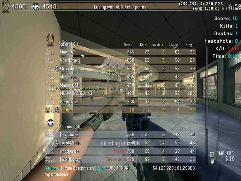 | pesada15 | RatForce | Team Deathmatch | 24/7 PURE ACTION | 2025-09-03 18:27:48 | 9598 | Report | |