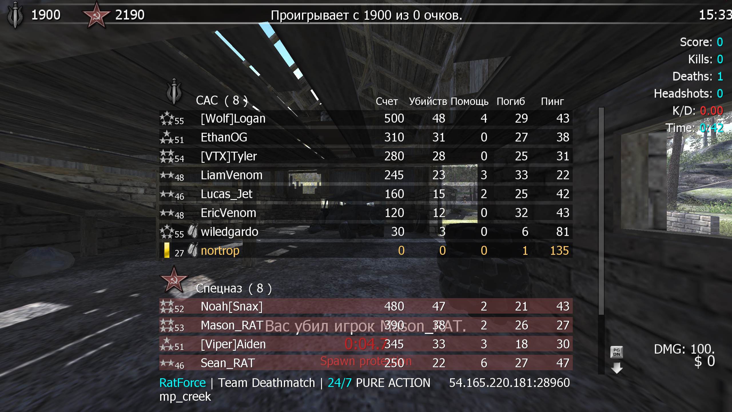 | nortrop | RatForce | Team Deathmatch | 24/7 PURE ACTION | 2025-09-01 14:59:33 | 7197 | Report | |