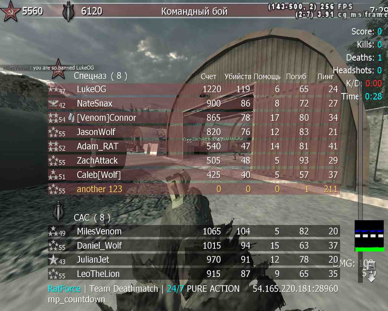 | MTR a m 1 g o | RatForce Ranked | Team Deathmatch | 24/7 | 2025-08-30 00:31:33 | 9421 | Report | |