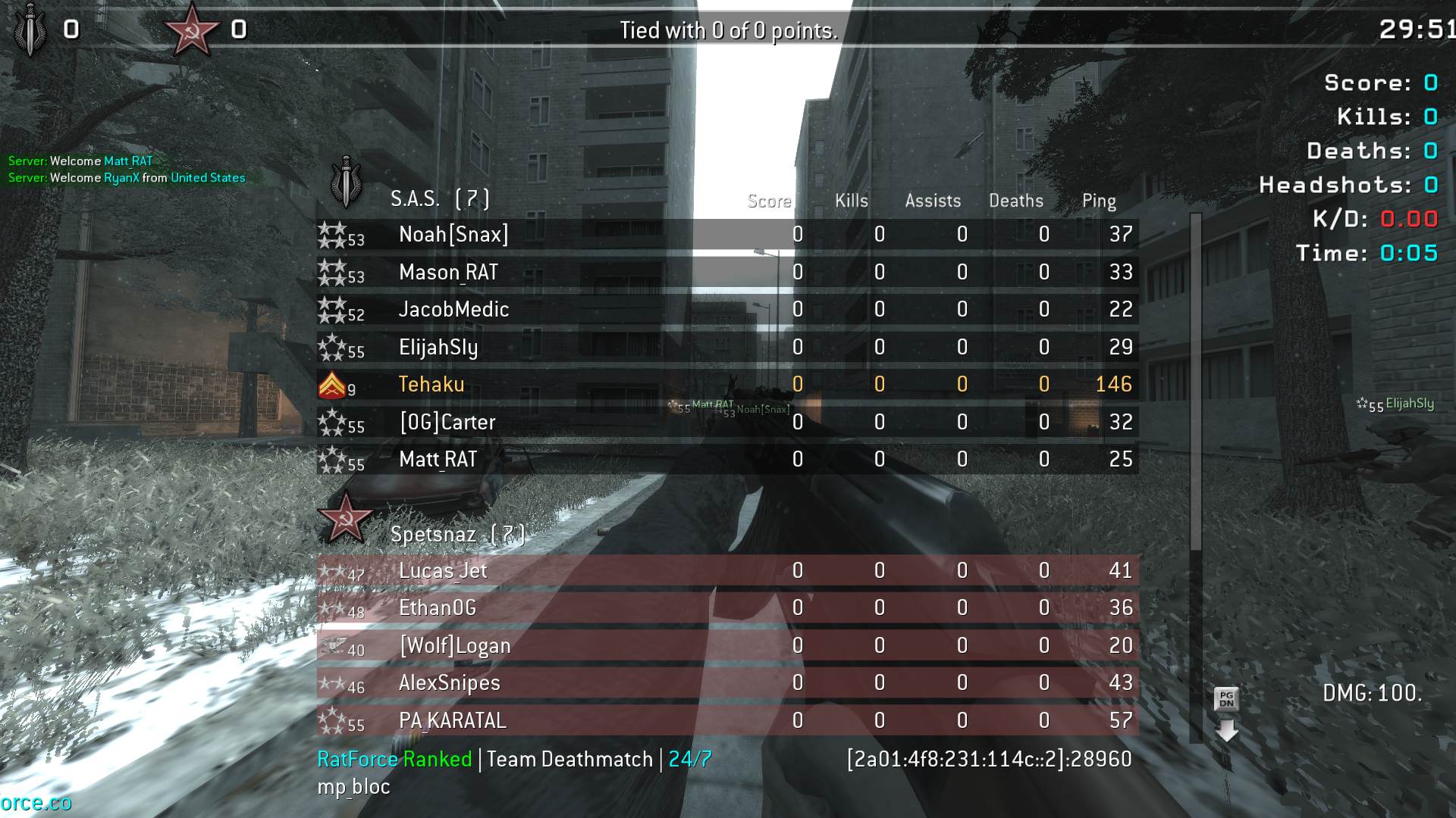 | ofcniggz | RatForce Ranked | Team Deathmatch | 24/7 | 2025-08-26 19:20:16 | 3146 | Report | |