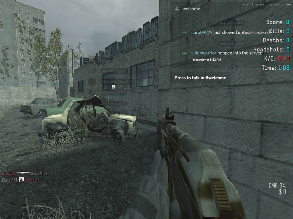 | Ur Mom nigguh | RatForce Ranked | Team Deathmatch | 24/7 | 2025-08-21 23:02:32 | 7350 | Report | |