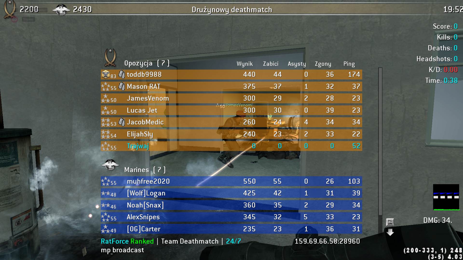 | toddb9988 | RatForce | Team Deathmatch | 24/7 PURE ACTION | 2025-08-21 21:20:03 | 4116 | Report | |