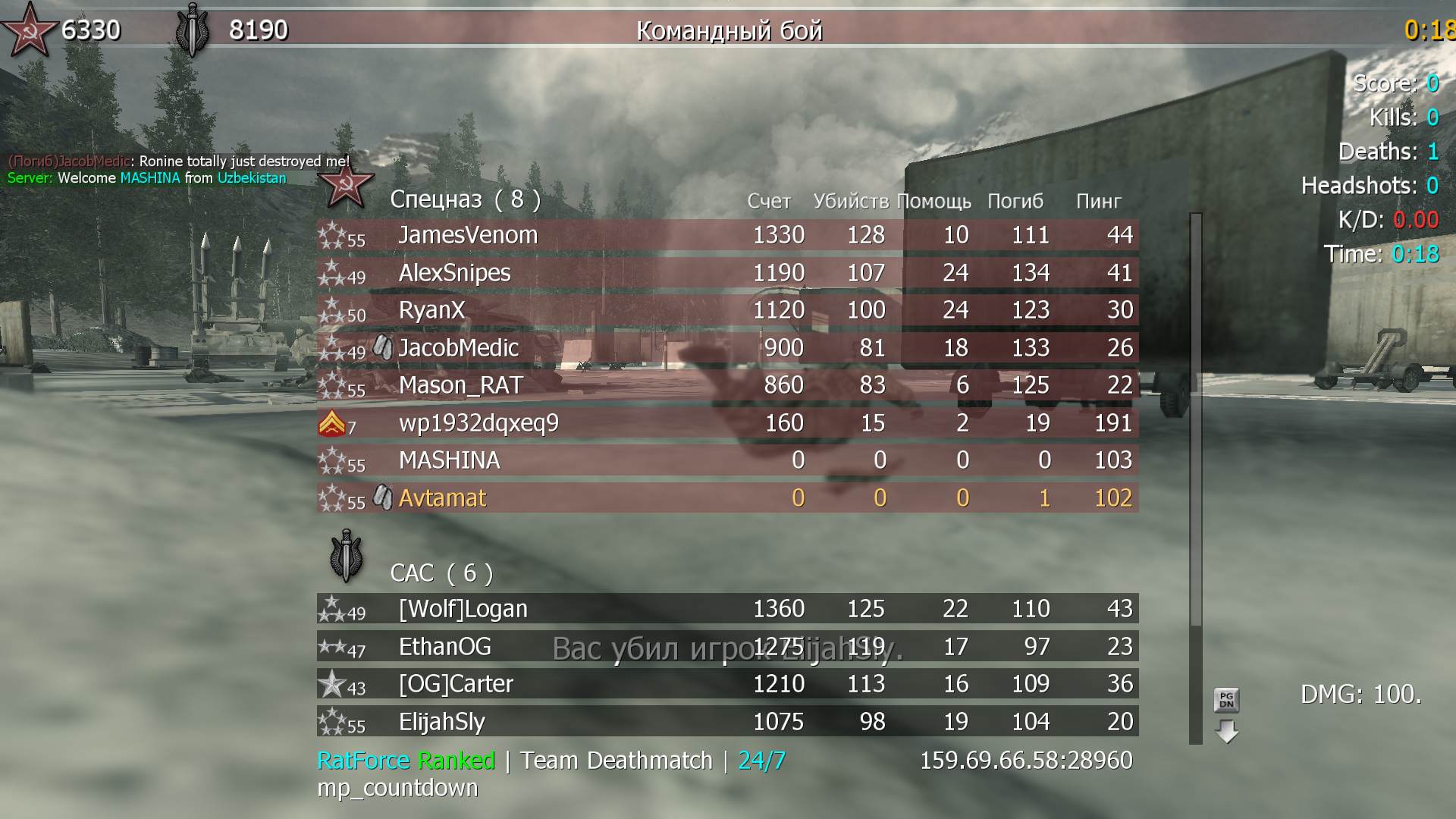| MASHINA | RatForce Ranked | Team Deathmatch | 24/7 | 2025-08-21 09:45:34 | 1573 | Report | |