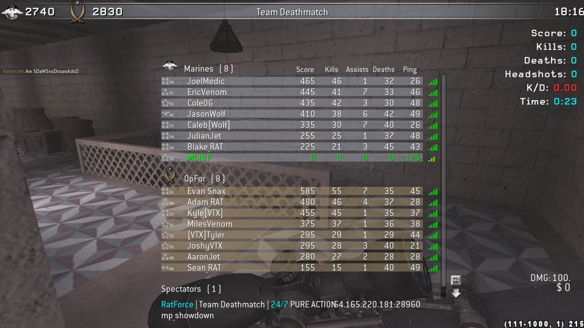 | MONIP | RatForce | Team Deathmatch | 24/7 PURE ACTION | 2025-08-18 07:08:06 | 1613 | Report | |