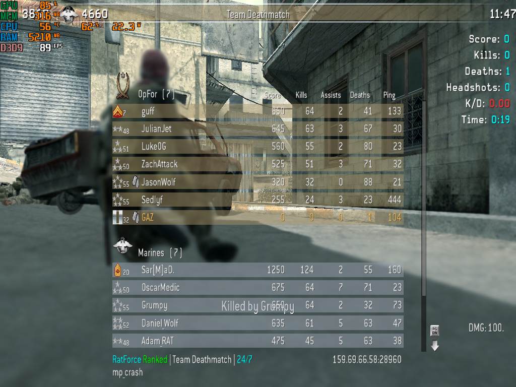 | Grumpy | RatForce Ranked | Team Deathmatch | 24/7 | 2025-08-09 06:03:33 | 7368 | Report | |