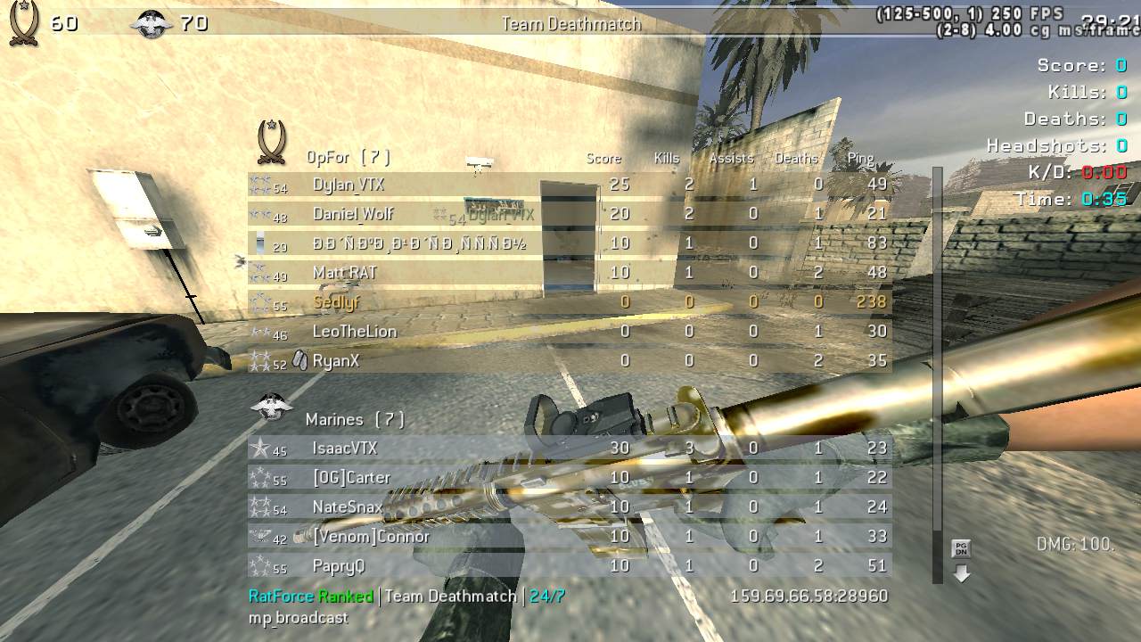 | notoriouswaqar | RatForce | Team Deathmatch | 24/7 PURE ACTION | 2025-08-05 10:21:12 | 7326 | Report | |