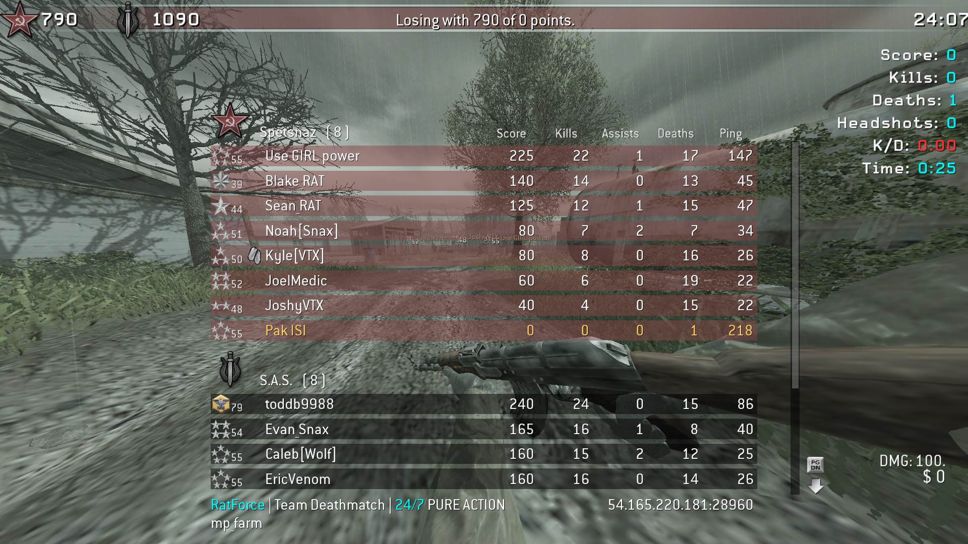 | SGT.GHOST | RatForce Ranked | Team Deathmatch | 24/7 | 2025-08-04 20:54:04 | 3993 | Report | |