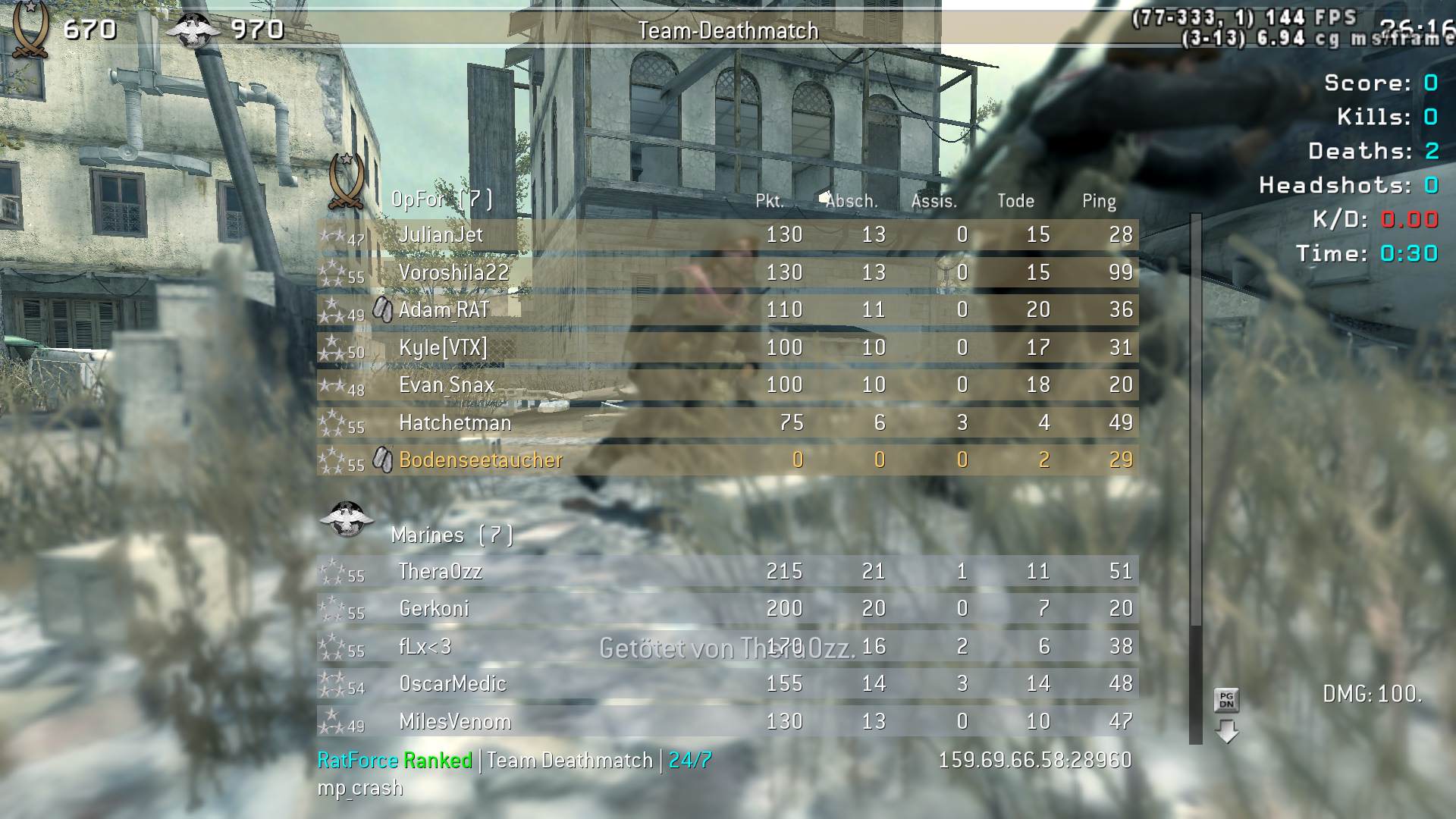 | F4TM8 | RatForce Ranked | Team Deathmatch | 24/7 | 2025-08-03 11:53:56 | 1256 | Report |