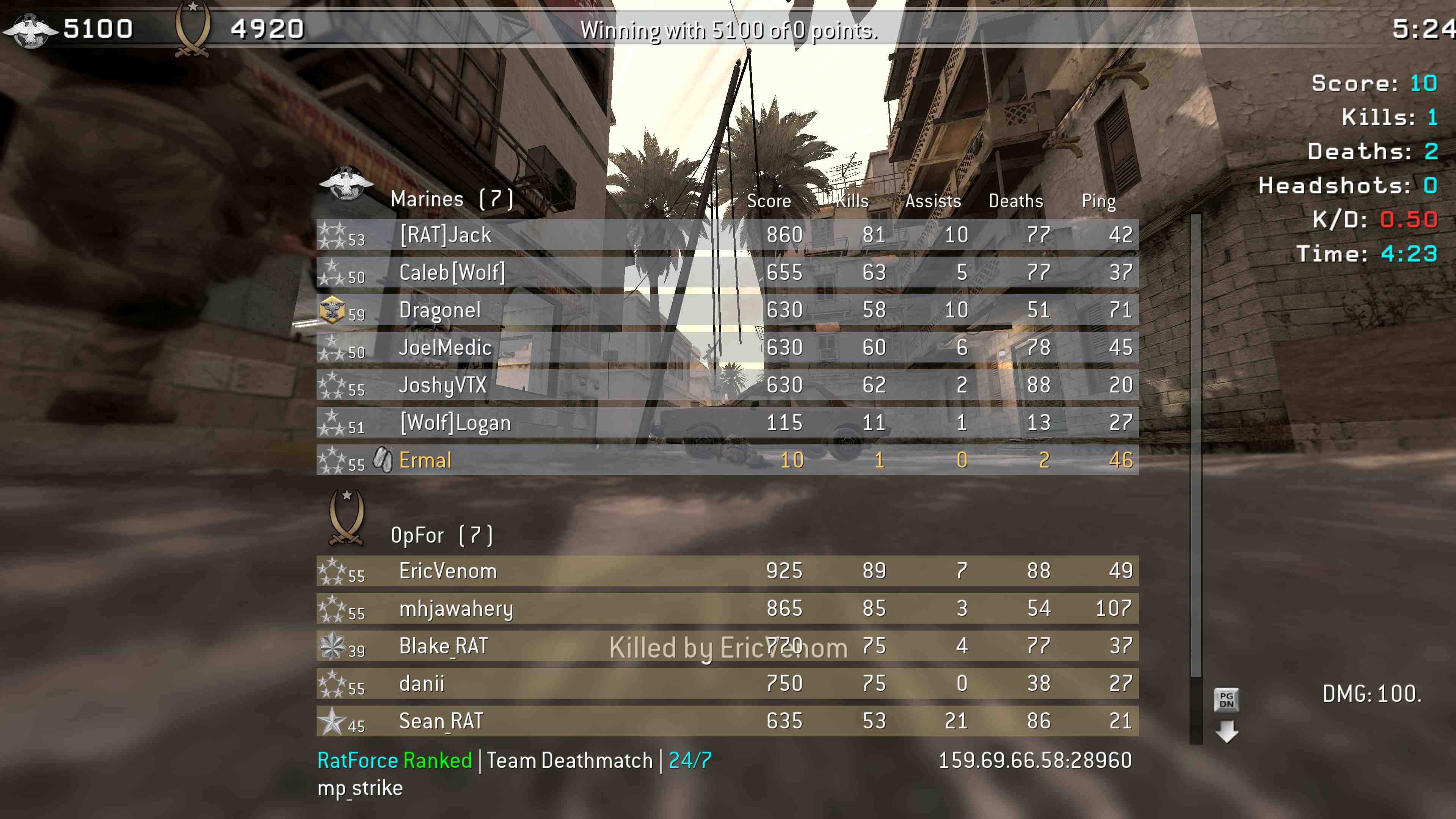 | Ermal | RatForce Ranked | Team Deathmatch | 24/7 | 2025-07-25 14:19:12 | 6021 | Report | |