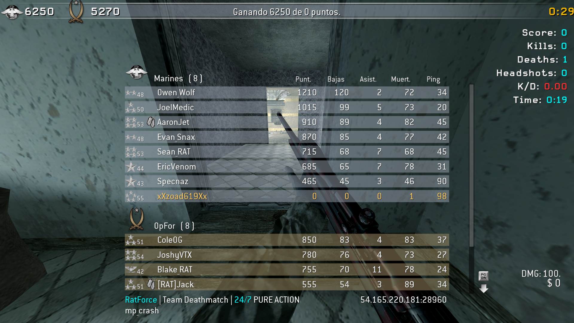 | xXzoad619Xx | RatForce | Team Deathmatch | 24/7 PURE ACTION | 2025-07-23 03:58:13 | 5833 | Report | |