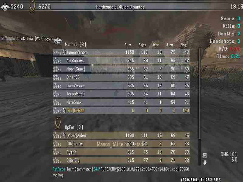 | Snoopy110 | RatForce Ranked | Team Deathmatch | 24/7 | 2025-07-11 19:51:06 | 2357 | Report | |