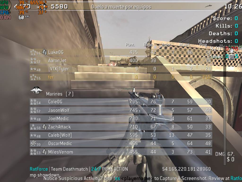 | Jugador | RatForce | Team Deathmatch | 24/7 PURE ACTION | 2025-07-11 00:49:57 | 4824 | Report | |