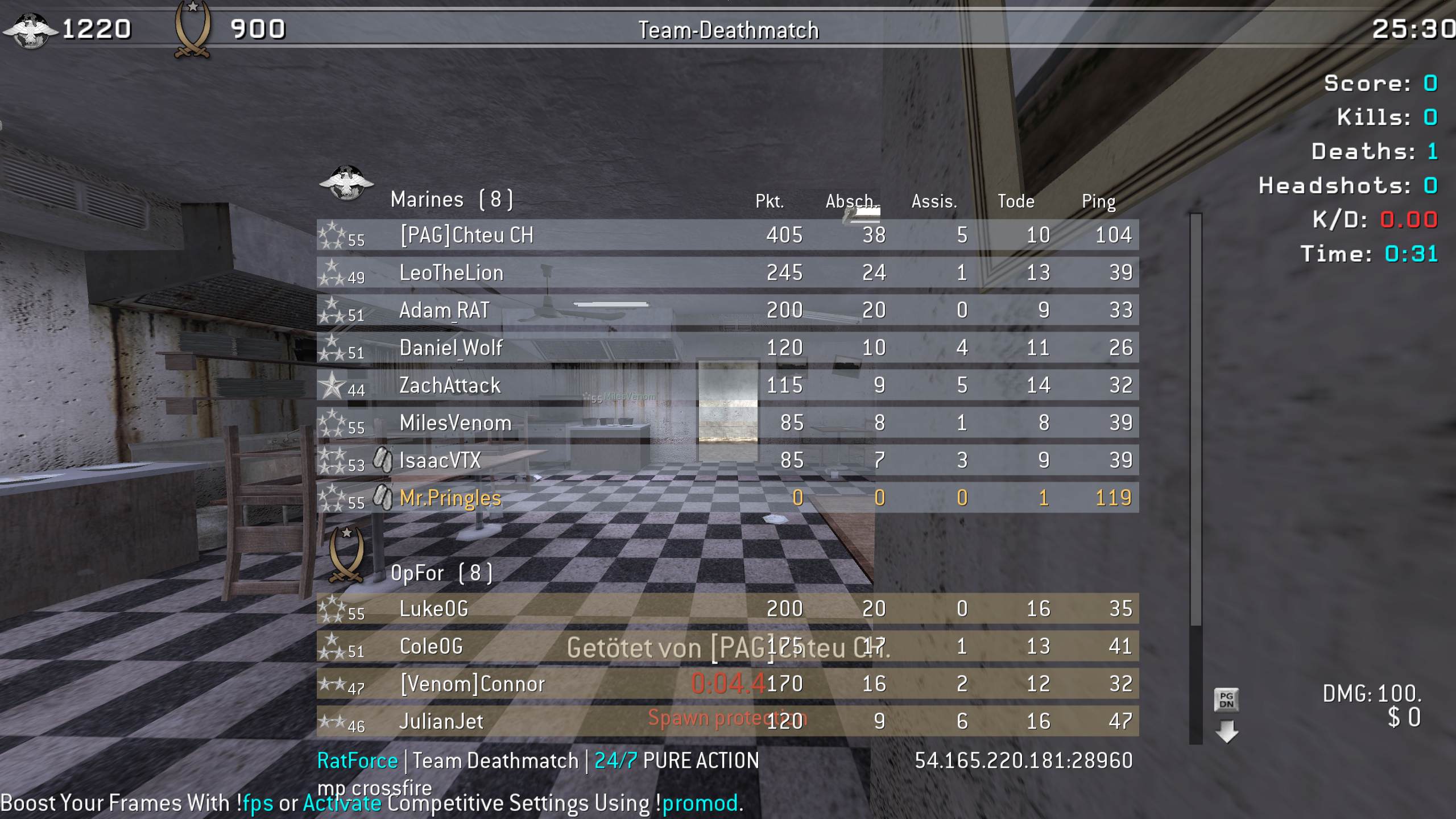 | Mr.Pringles | RatForce | Team Deathmatch | 24/7 PURE ACTION | 2026-03-14 22:26:49 | 6655 | Report | |