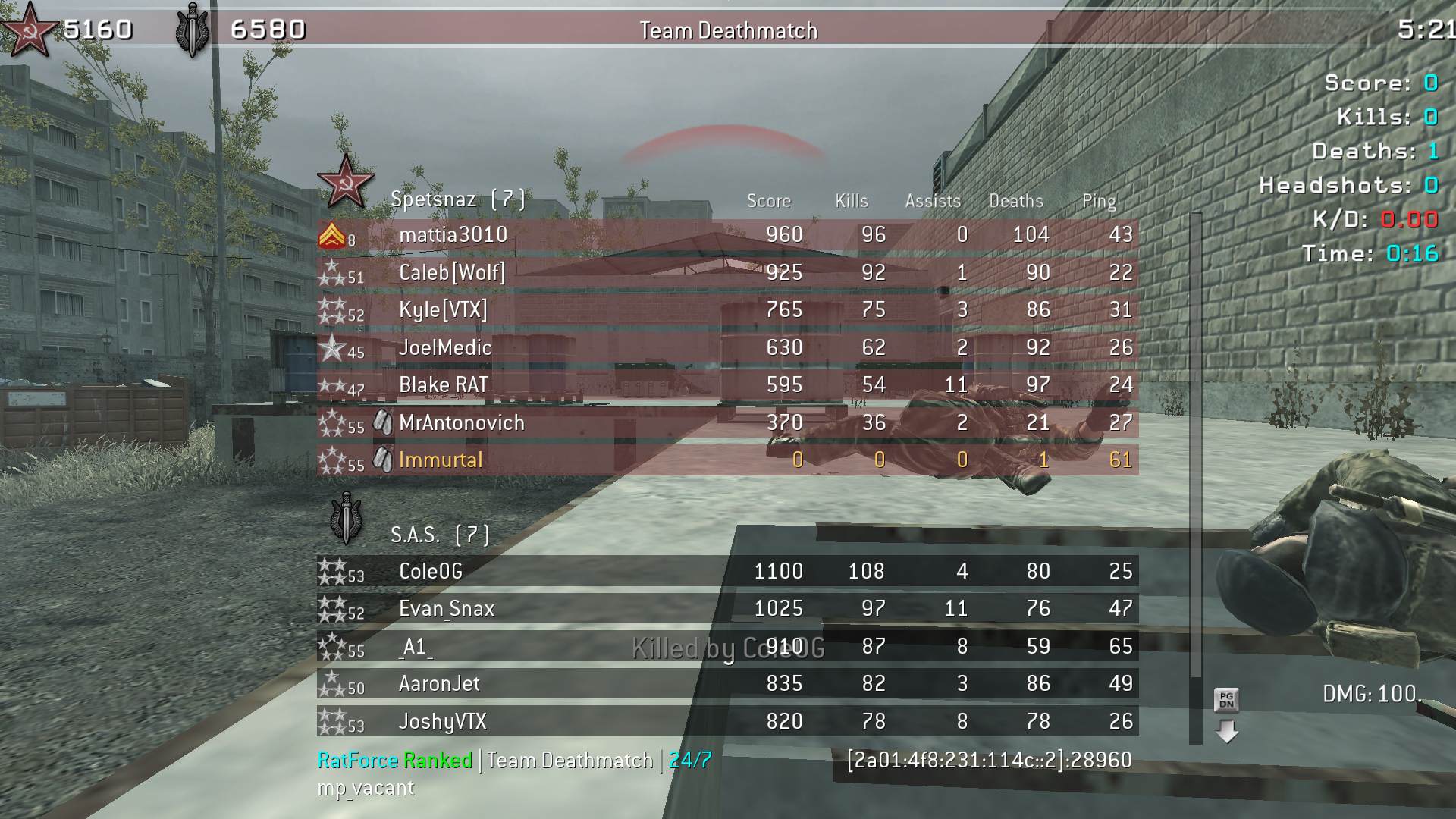 | Immurtal | RatForce Ranked | Team Deathmatch | 24/7 | 2025-07-07 20:54:30 | 9988 | Report | |