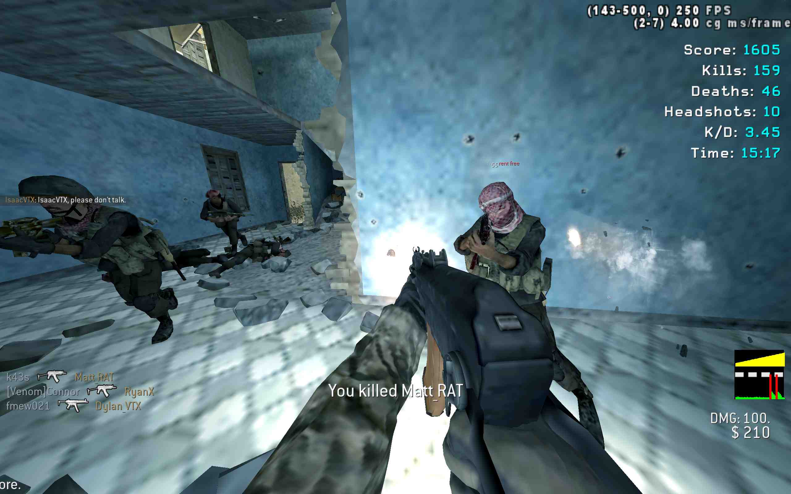 | Mohammed | RatForce Ranked | Team Deathmatch | 24/7 | 2025-07-02 05:13:46 | 7670 | Report | |