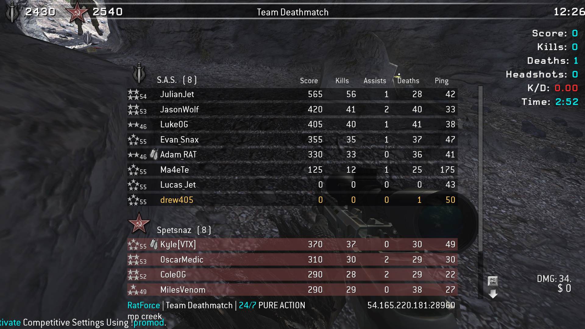| drew405 | RatForce | Team Deathmatch | 24/7 PURE ACTION | 2026-02-09 18:44:56 | 4928 | Report | |